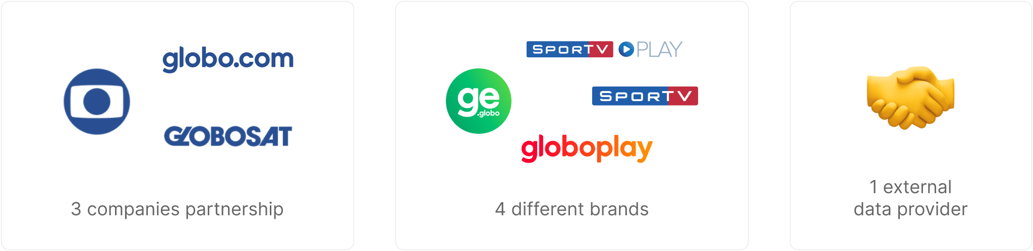 The Globo Group had exclusive rights coverage, and the project would leave a legacy of structured data for the products. On the other hand, it was a partnership among 3 group companies, the experience had to be delivered across 4 different brands, and there was an external data provider, which would provide all the data through external pages, not through APIs – we had to use their front-end solution.