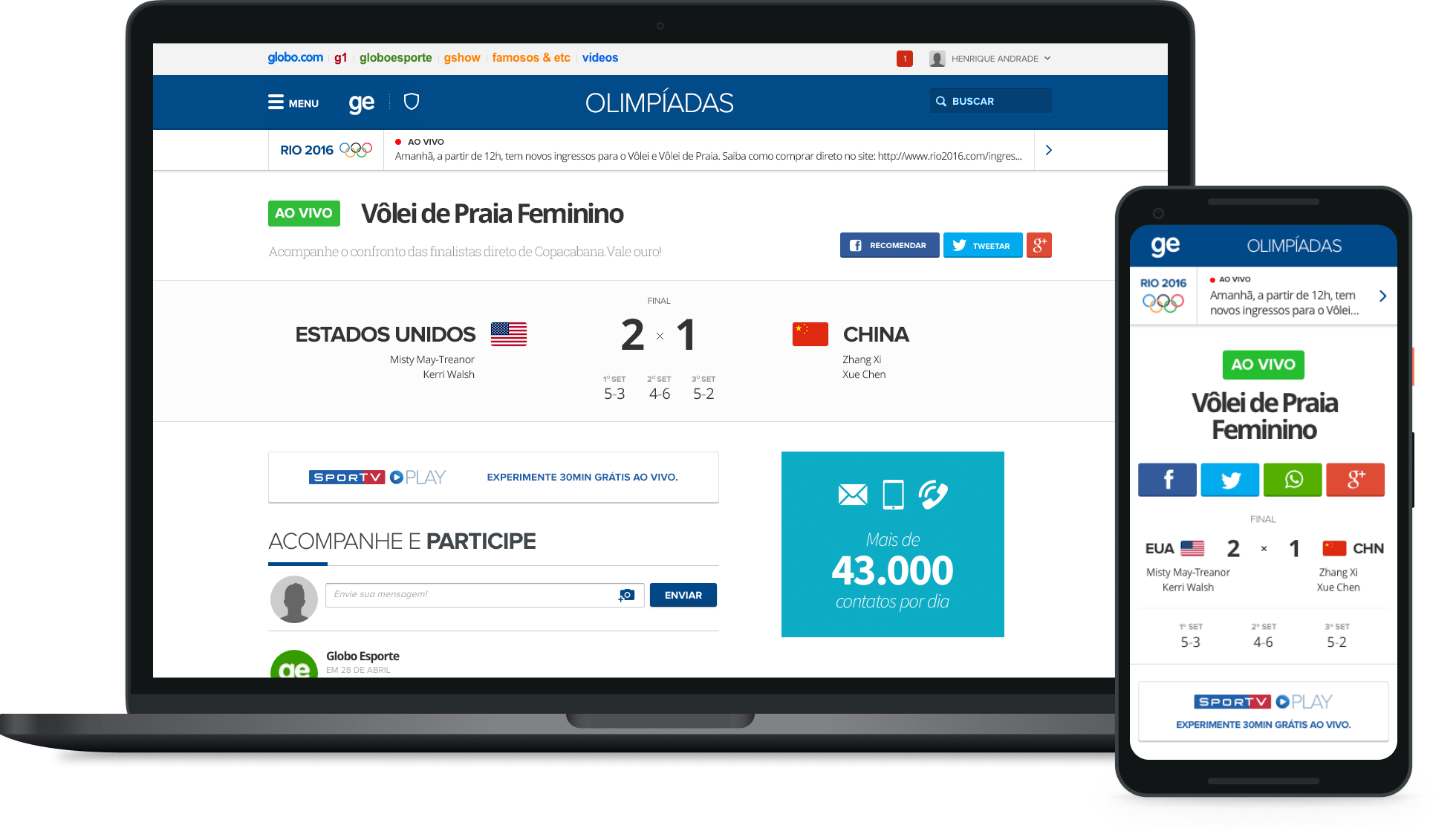 During the Olympic Games, we followed the audience and finished them with very good results. The average of visits per day in GloboEsporte increased 43% during the Games, and for SporTV.com, that raise was 46%.